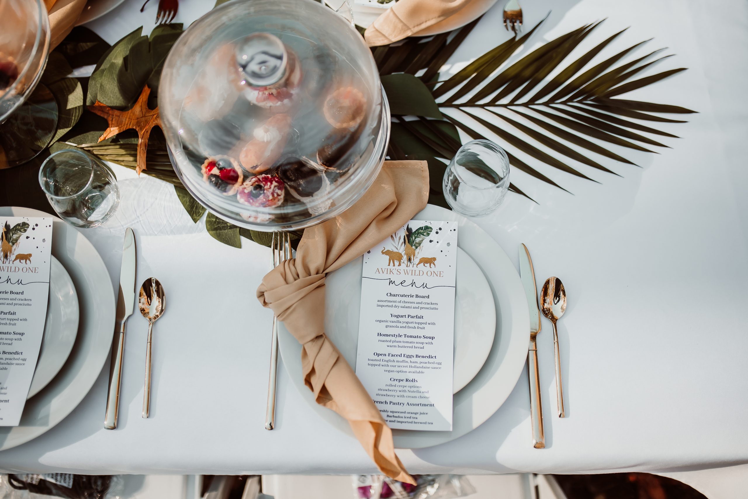 Anita, alongside her teammate Ana, both from Royal Rentals, helped me with my design ideas and creatively brought them to life for me. From the tables, to the chairs, to the table settings and menus, Anita and Ana beautifully brought together the Safari themed party “Avik’s Wild One.” Of course, this dynamic duo had other talented individuals at their disposal: Marina, from Rinas Balloon Arches, who did all the balloon designs; and Arturas who catered the event with delicious offerings from Crepes Tea House in West Springfield, MA.