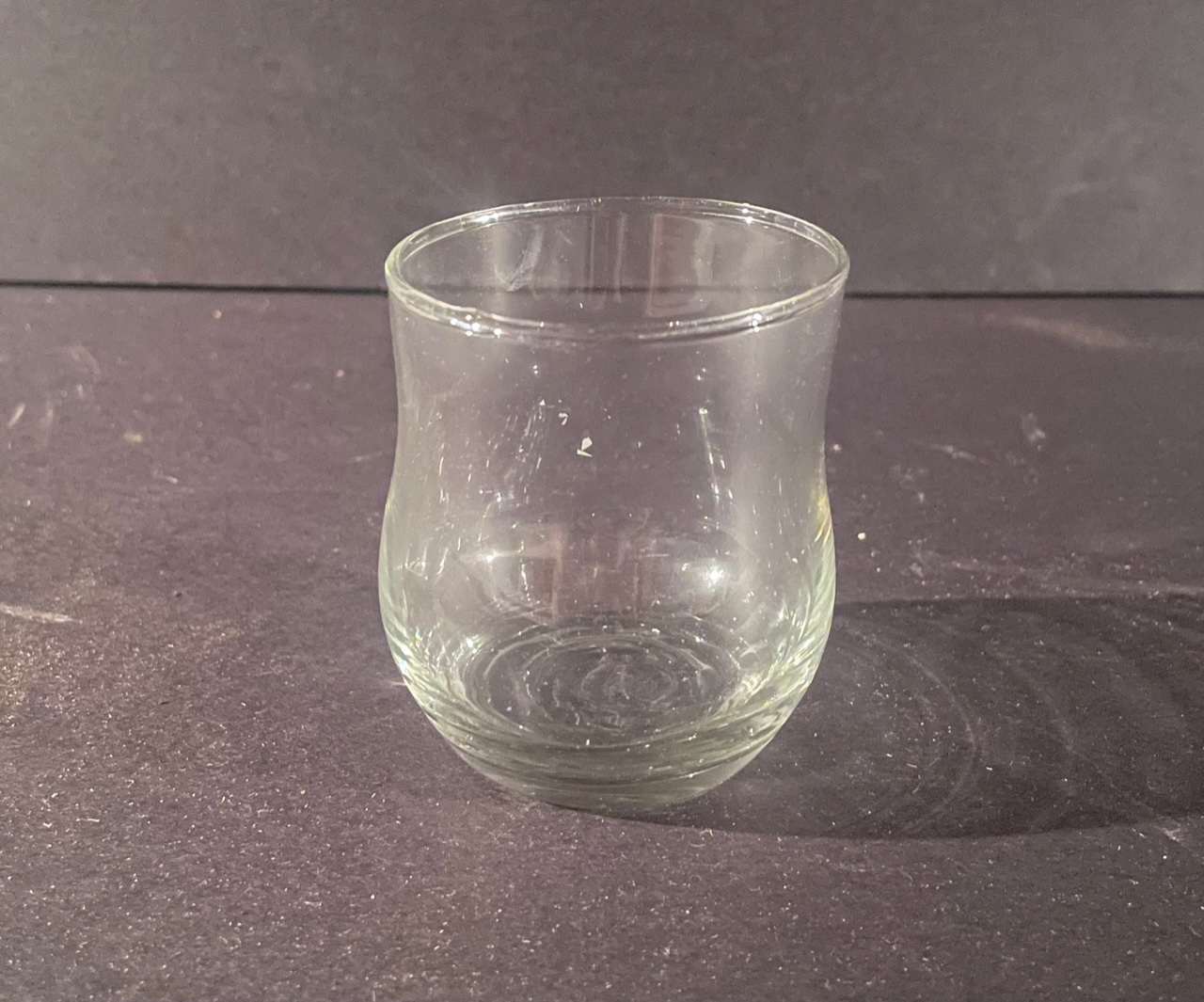Small curved clear votives. Works with tea light candles. We recommend 6 per guest table.