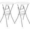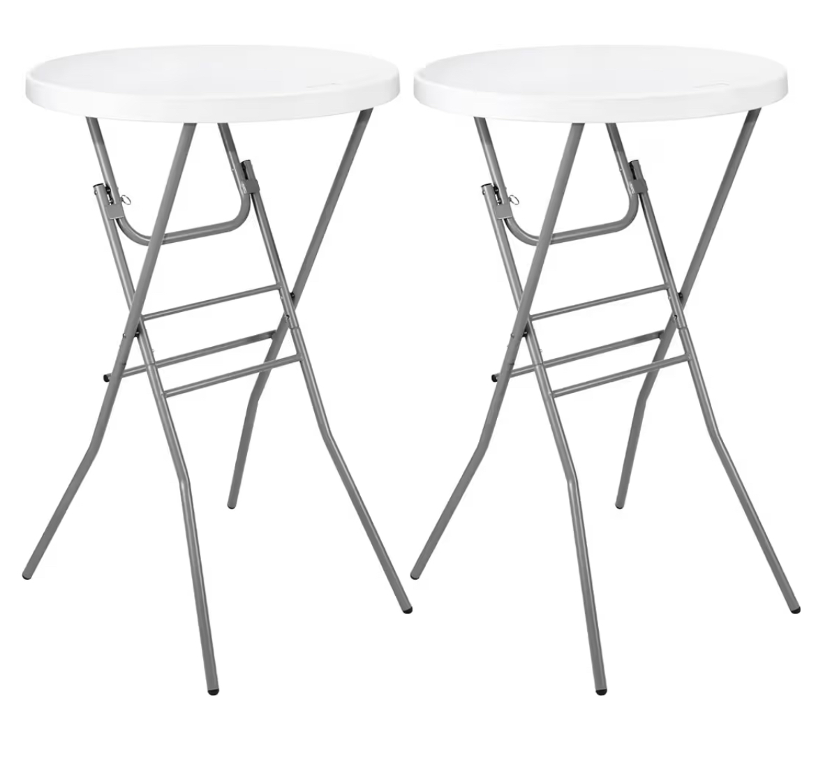 Plastic Cocktail Tables. Folding. Easy to store and move. Light weight. Rent the Black Linens to complete the set.