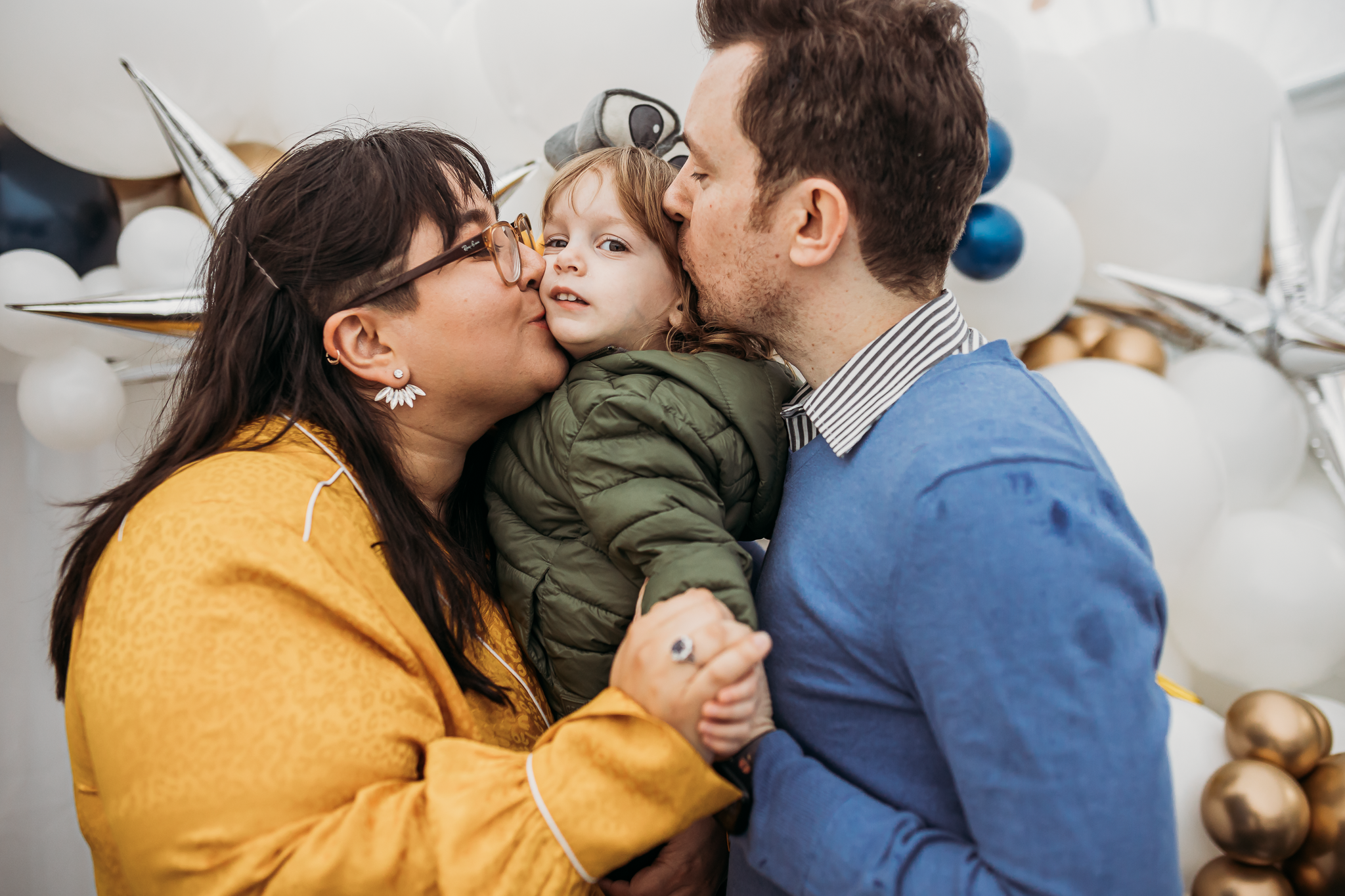 Gold and silver starburst balloons